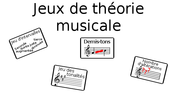 Jeux de théorie musicale : Je vous propose une série de jeux de théorie musicale : Jeu des demi-tons, jeu des tonalités, jeu du nombre d'altérations, jeu de reconnaissance des intervalles